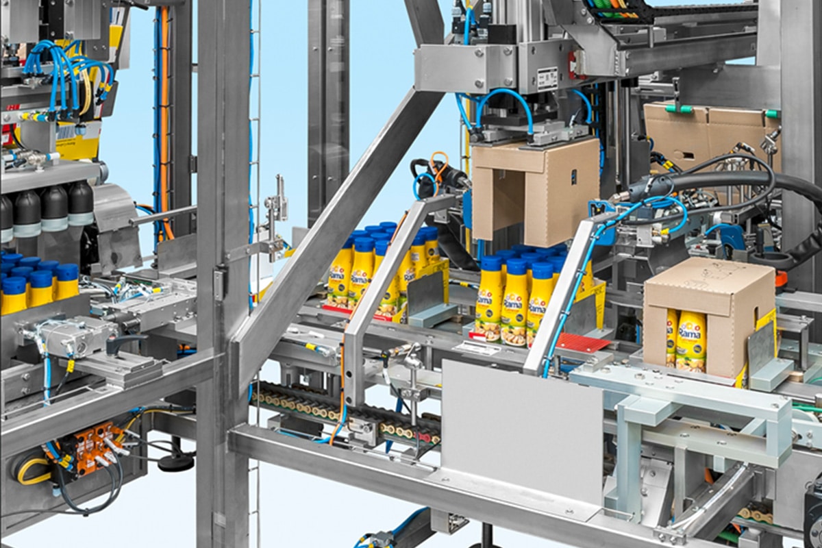 Our strength lies in format-flexible and high-performance machines that handle your packaging processes with exceptional efficiency. State-of-the-art, suitable for long-term use in 3-shift operation. User-friendly and low-maintenance. Flexibility and variety characterize Schäfer & Flottmann’s packaging machines. Whether smallest 10g portions or large containers up to 50 liters – our systems adapt precisely to your requirements. From butter bricks, cups, and flowpacks to bottles, cans, as well as cardboard and flexible packaging: We process a wide variety of products and formats reliably, gently, and efficiently. Thanks to our flexible system solutions, you can realize almost any packaging form: wrap-around cartons, displays, RSC cartons, plastic crates, punched trays, and open trays – with or without lids.