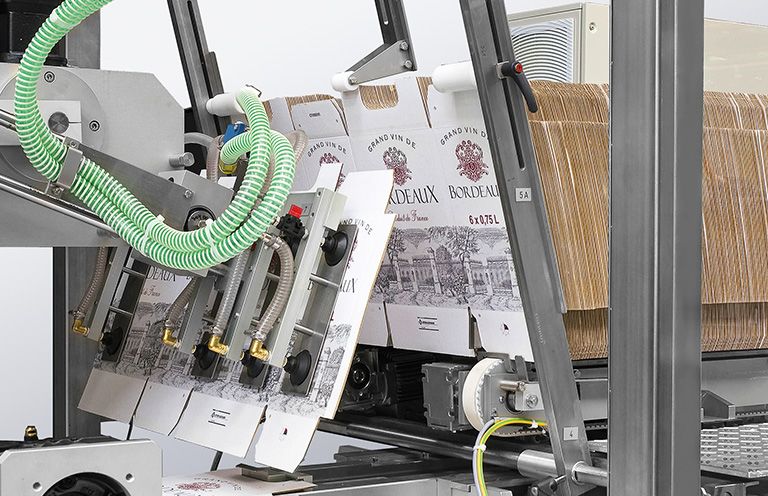 Des machines à haut rendement, développées pour tous les domaines d’exploitation, visant à remplir une grande quantité de caisses dans une étape suivante. Toutes les opérations de cette installation sont destinées à obtenir une cadence élevée et en même temps garantir un fonctionnement calme de la machine. Nous renonçons catégoriquement à l'emploi de mouvements pneumatiques et concevons toutes les étapes de marche avec des servomoteurs. La caractéristique essentielle de cette installation est sa flexibilité de format. Celle-ci permet de manier une gamme impressionnante de formats de caisses, que ce soit rectangulaire ou octogonal. Sont au premier plan, les changements de format rapides et faciles à réaliser à de broches de réglage ou, en option, par l'emploi de servomoteurs entièrement automatiques. Les pièces amovibles peuvent être échangées de manière fiable et simple par une fermeture rapide. Un écran tactile à affichage graphique tient l'opérateur au courant sur l'état actuel de la machine.