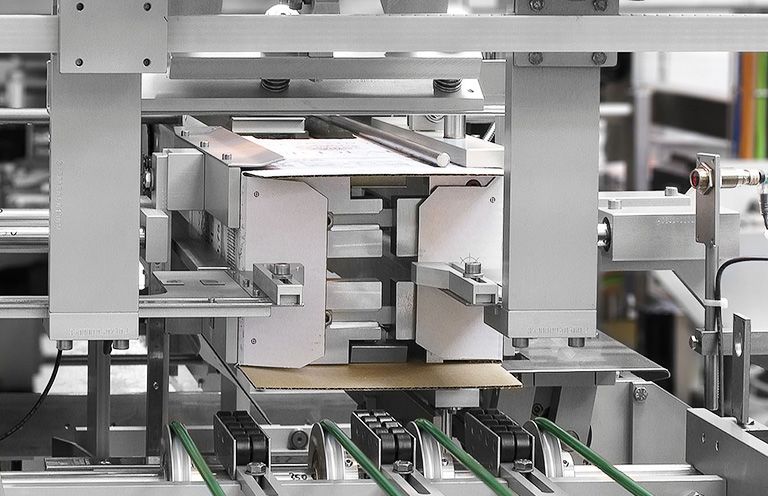 Une caractéristique essentielle du système est la conception souple de format qui permet à l'utilisateur de fabriquer une gamme impressionnante de format de cartons sur demande non seulement en quadrilatère mais aussi sur le modèle de l'octogone. L'accent est mis sur les changements de format rapides et faciles via l'ajustement de la broche, qui peut également avoir lieu via des servomoteurs facultatifs et entièrement automatiques. Toutes les pièces de changement nécessaires peuvent être échangées en toute sécurité et facilement par fermeture rapide.
