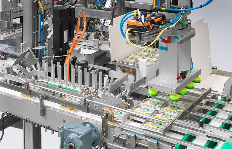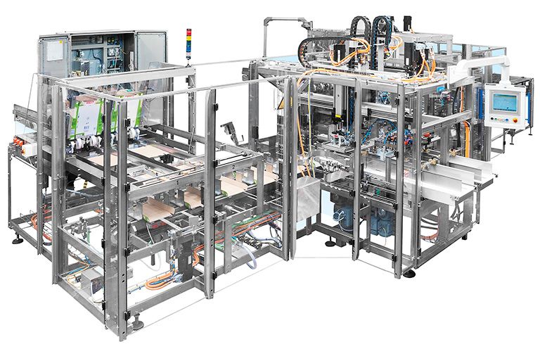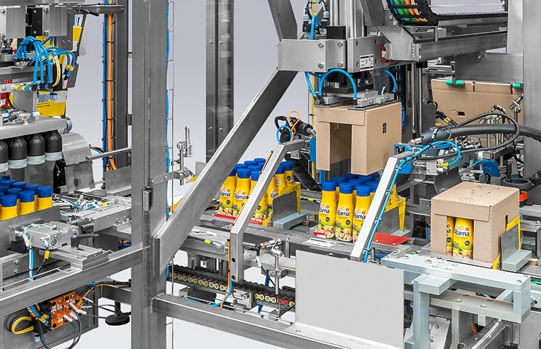 Les encaisseuses wrap-around plient la découpe directement autour du produit. Ceci permet un emballage particulièrement serré car aucun outil de pliage n'est nécessaire entre le produit et le carton. Un principe que nous appliquons aussi pour emballer les produits souples. L'avantage : les produits sont regroupés directement sur la découpe, les influences mécaniques pendant le processus d'emballage sont réduites au minimum. Le pliage des rabats latéraux, inférieurs et supérieurs partiellement superposés confère au carton une grande stabilité, pouvant être augmentée encore nettement par un pliage totalement superposé. Moins de matériau pour plus de stabilité : cette formule est valable pour la méthode wrap-around par rapport à la caisse américaine. L'emballage wrap-around permet ainsi une plus grande capacité de charge. Par exemple : sur la palette.