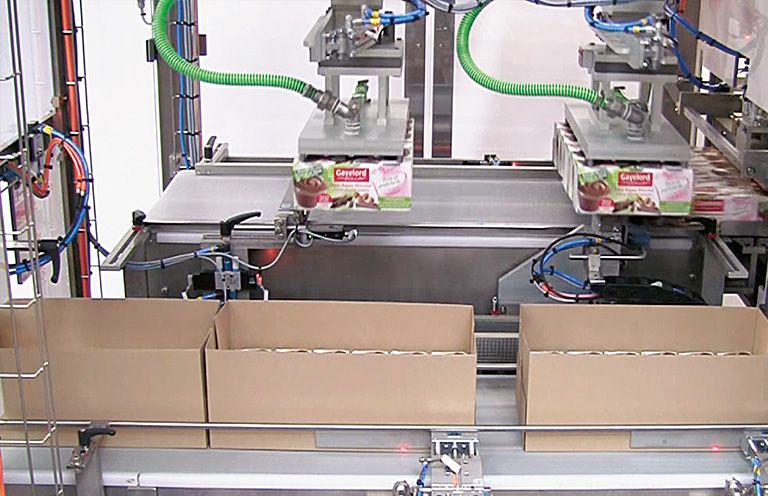 Unsere integrierten Anlagen sind besonders platzsparend und gliedern sich perfekt in Ihre Systeme ein. Sensible oder auch kopflastige Produkte, die möglichst nicht über Bänder gefördert werden sollten, verarbeiten sie besonders schonend bei maximaler Betriebssicherheit. Ihr Vorteil: Greifersysteme entnehmen die Produkte direkt aus der Primäranlage und setzen sie in die Umverpackung ein. Die integrierten Anlagen konzipieren wir in enger Abstimmung mit dem Hersteller der Füllanlagen und passen sie speziell an die jeweiligen Bedürfnisse an.