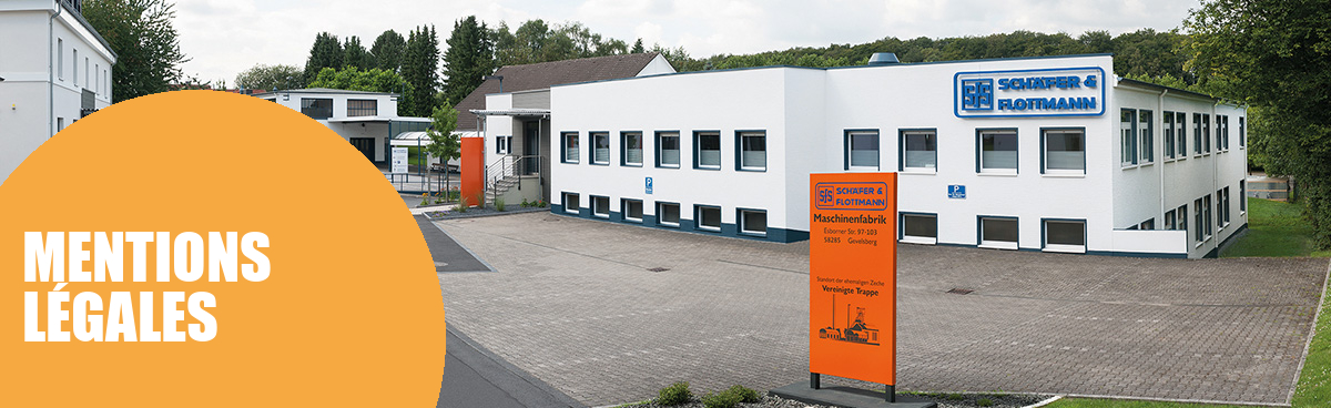 Toutes les informations publiées sur cette site ainsi que les contributions et images et leur disposition sont protégées par le droit d’auteur. Toute utilisation non autorisée par le droit d’auteur nécessite l’accord préalable de Schäfer & Flottmann GmbH & Co. KG. Ceci vaut notamment pour la reproduction, la diffusion, la transmission, le traitement, la traduction, l’enregistrement, la transformation et la lecture des contenus dans des banques de données ou autres médias et systèmes électroniques. Sans autorisation écrite les photocopies et les téléchargements de pages web ne peuvent se faire pour un usage personnel, privé et non pour un usage commercial.
